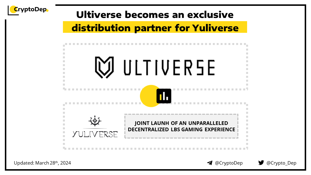 Ultiverse has partnered with Yuliverse to become its exclusive distribution partner, making it the premier gaming project throughout its ecosystem. Through this collaboration, the projects will launch an unparalleled decentralized LBS gaming experience to over 3M users. Ultiverse, backed by Binance Labs and Sequoia, is crafting AI-driven gaming worlds beyond imagination with VR and NFTs.