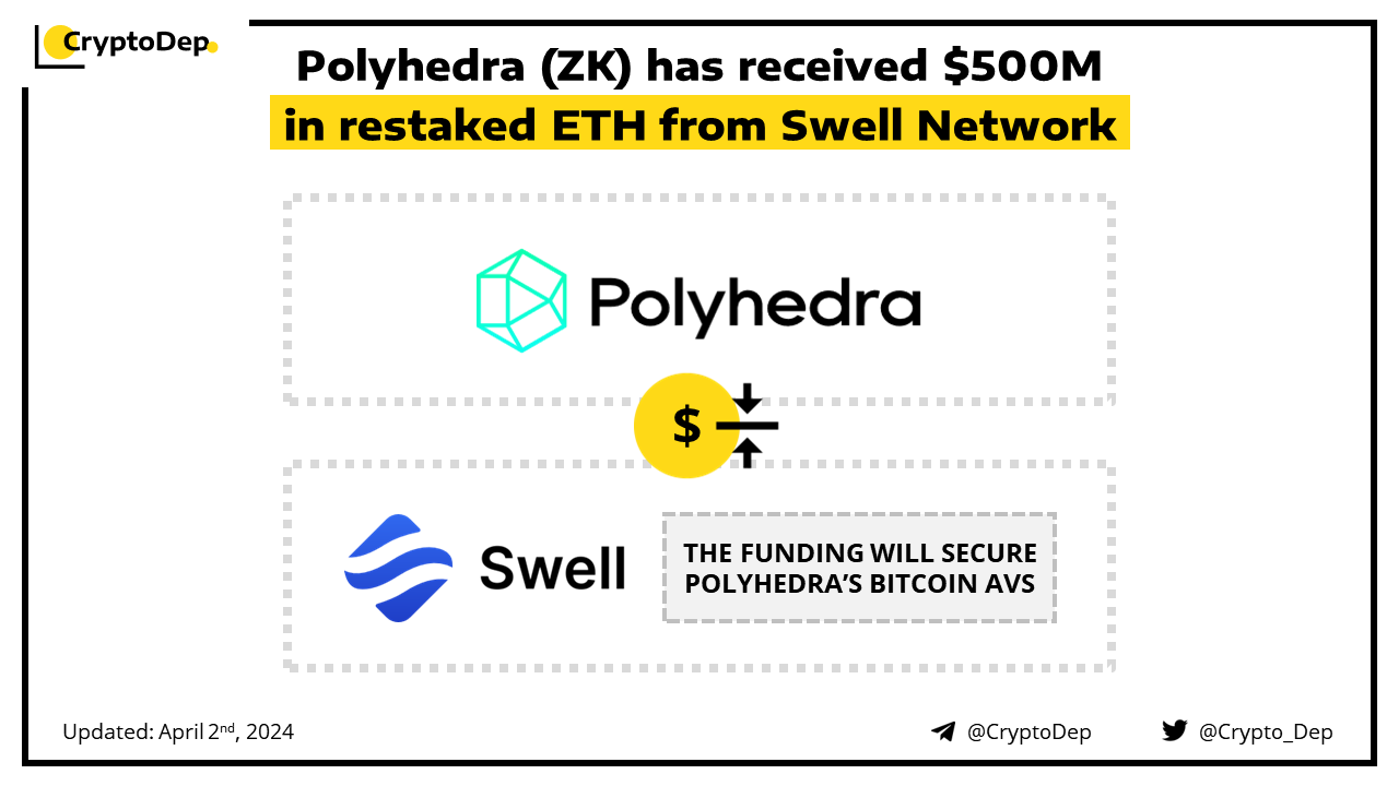 ββPolyhedra (ZK) has received $500M in restaked ETH from Swell Network