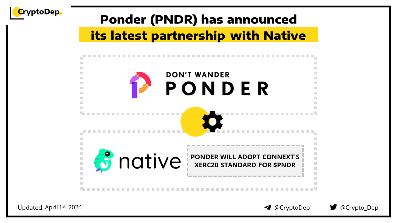 Ponder teams up with Native, a liquidity solution that combines bridges, assets, and pricing into one offering. Under this partnership, the projects aim to provide users with the best price rates regardless of the chain. Ponder's solution unites EVM and non-EVM chains with a universal framework to tackle liquidity fragmentation.