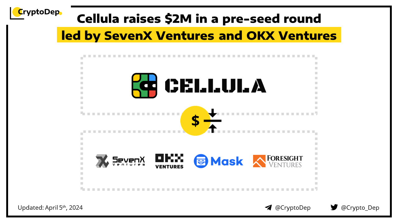Cellula, a fully on-chain AI game backed Binance Labs, has announced the closure of its $2M pre-seed funding led by SevenX Ventures and OKX Ventures. Additional round participants included Mask Network and Foresight Ventures. Cellula has previously received an investment from Binance Labs as one of the four best-performing projects of the S6 Incubation Program and joined BNB Chain's BNB Chain's Airdrop Alliance Program.