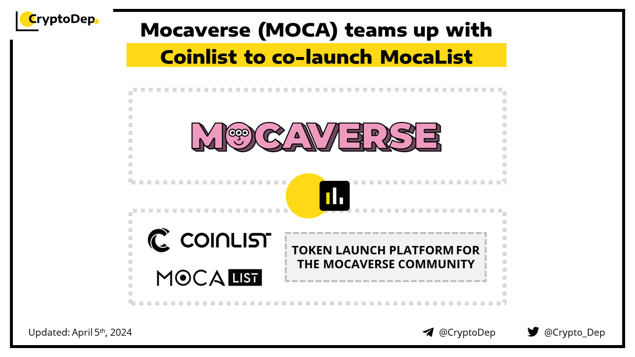 Mocaverse announces a strategic partnership with CoinList to launch MocaList, a token launch platform exclusively for the Mocaverse community. Moreover, the project has announced that the $MOCA coin will be the first token sale to launch on MocaList. CoinList users and holders of Moca NFTs and Moca ID will have access to guaranteed and waitlist codes for the $MOCA token sale. Mocaverse has previously raised $11.8M in funding from OKX Ventures, Foresight Ventures, Polygon Ventures, and others.