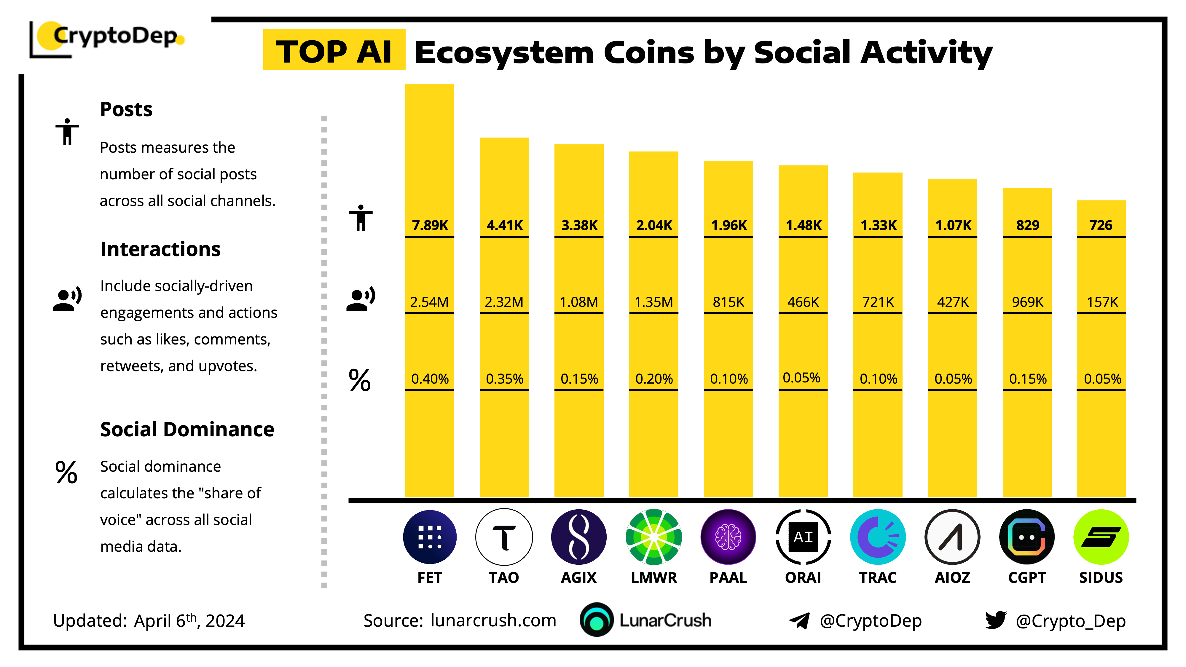 Interactions include socially-driven engagements and actions such as likes, comments, retweets, and upvotes.