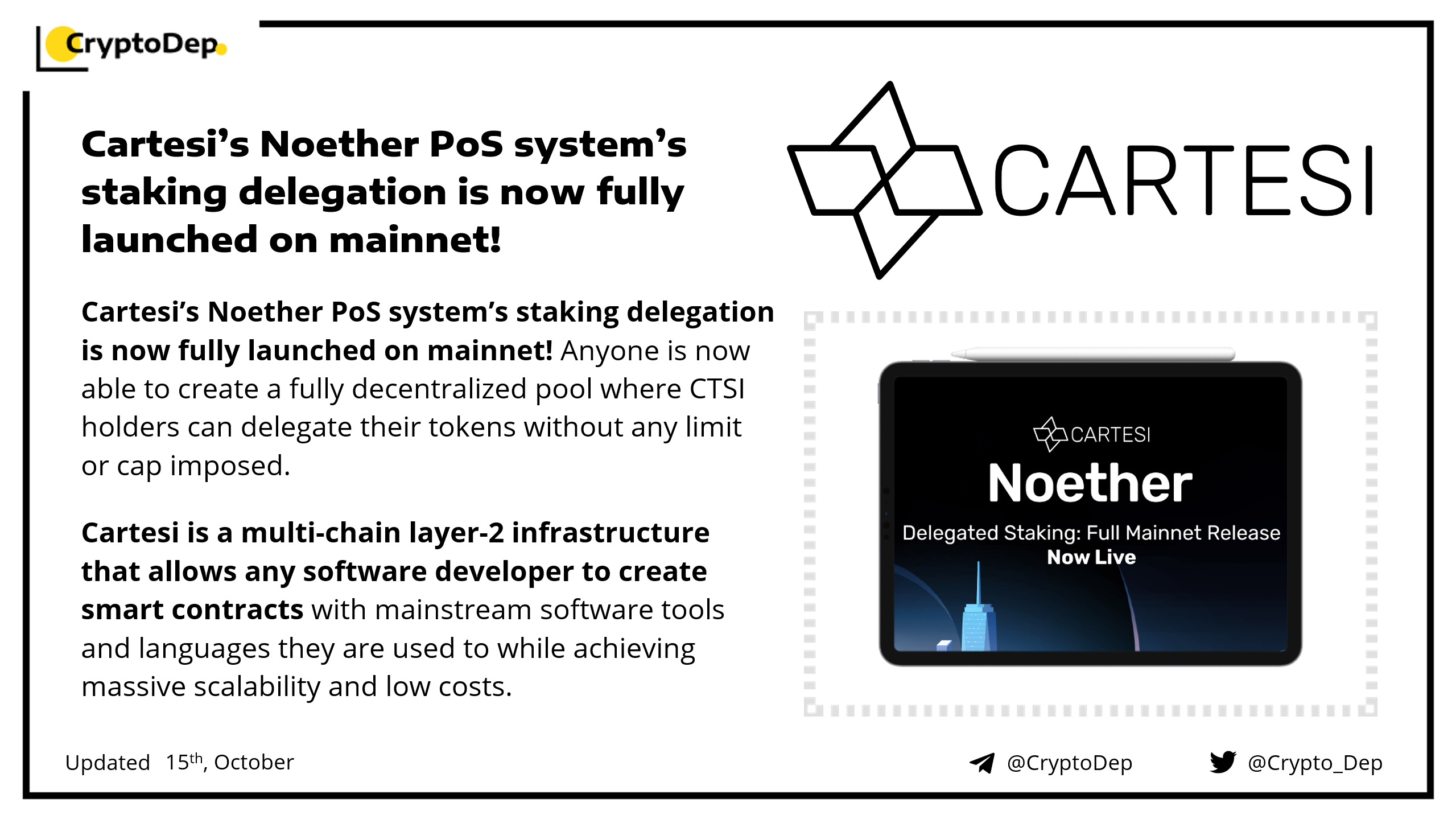 ββCartesiβs Noether PoS systemβs staking delegation is now fully launched on mainnet!