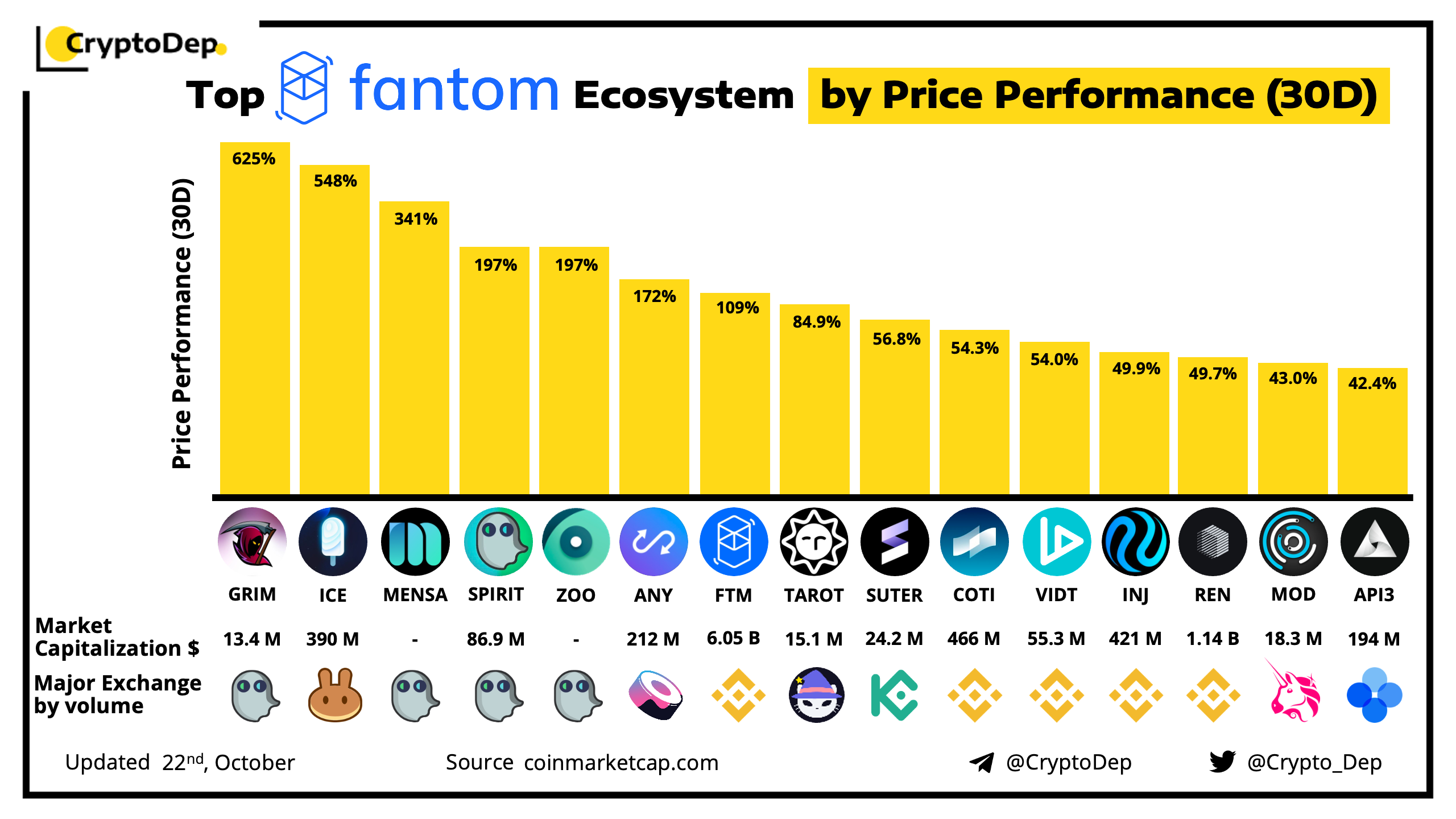 ββTop Fantom Ecosystem by Price Performance (30D)