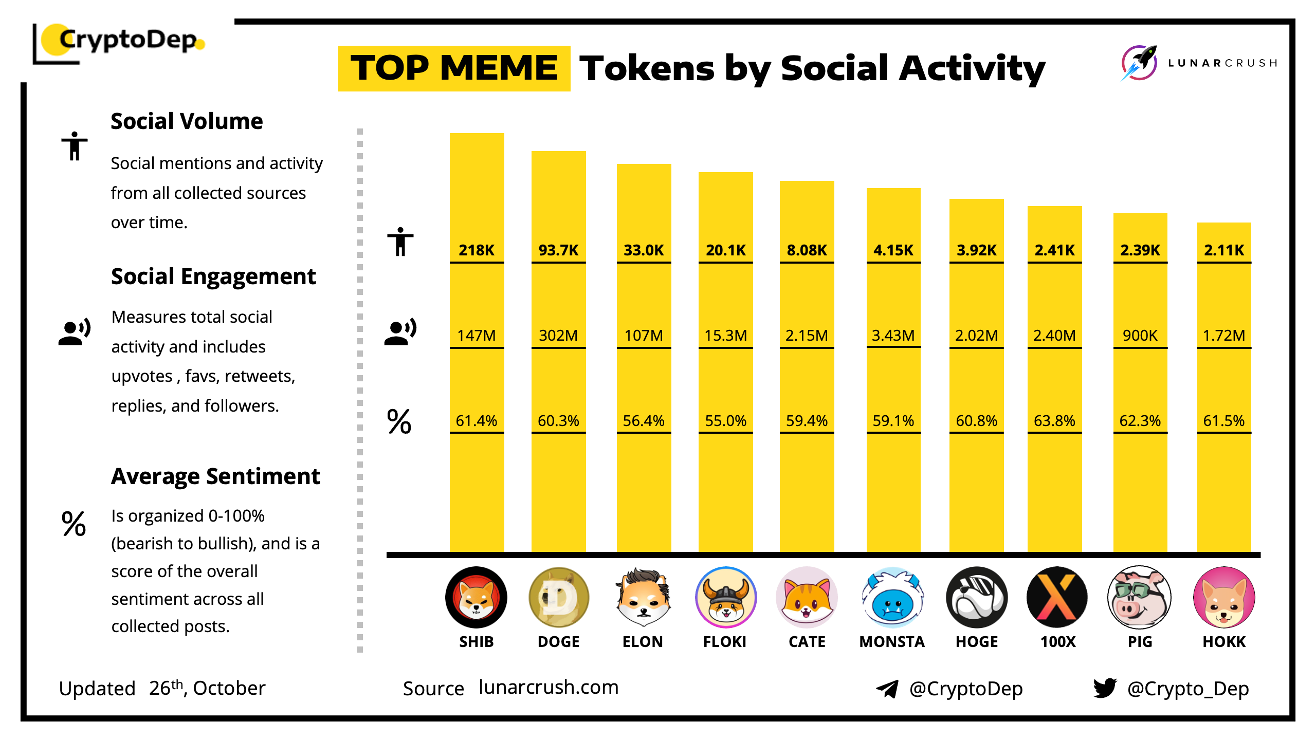 Social Engagement measures total social activity and includes upvotes, favs,retweets, replies, and followers.