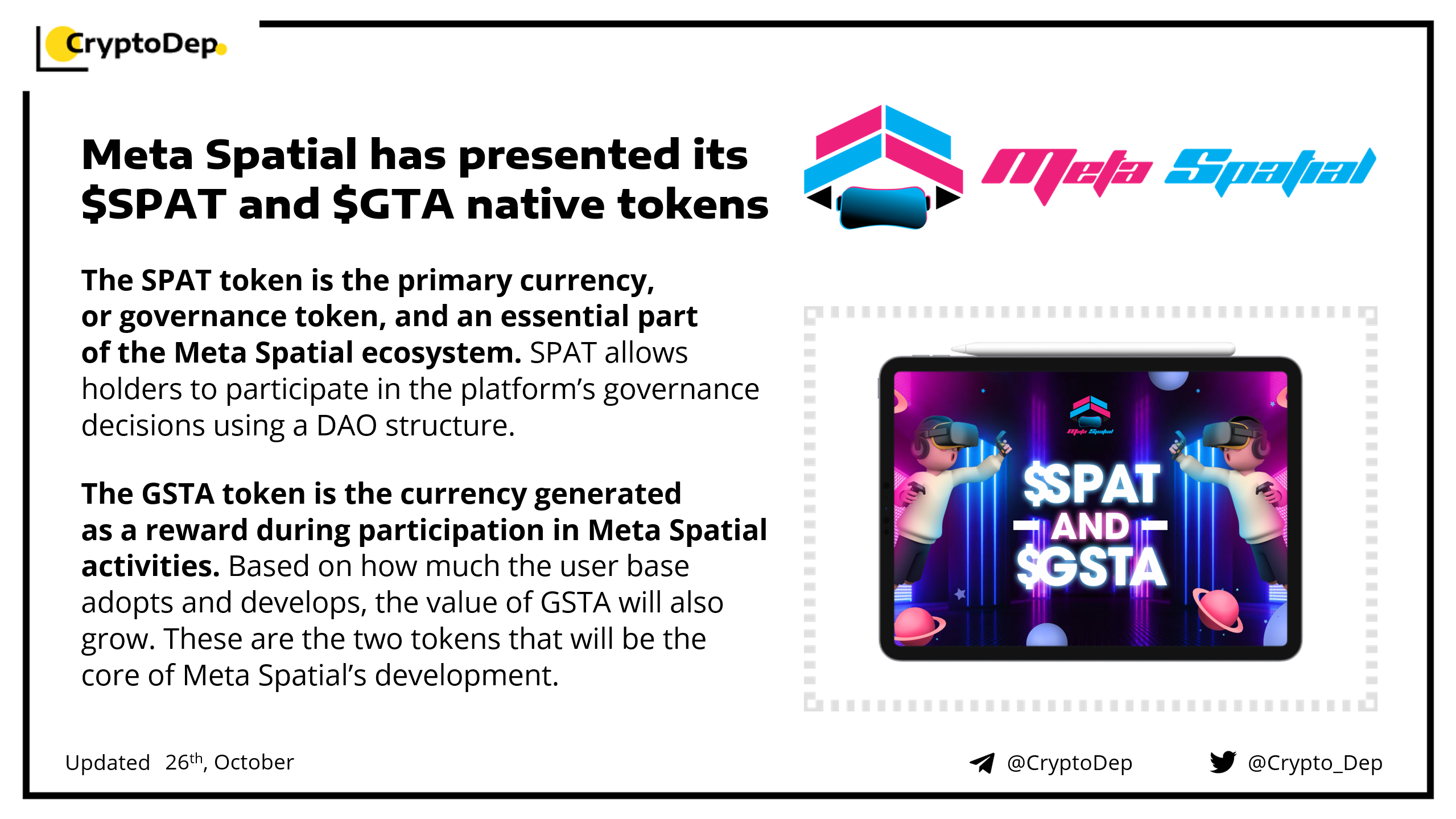 ββMeta Spatial has presented its $SPAT and $GTA native tokens