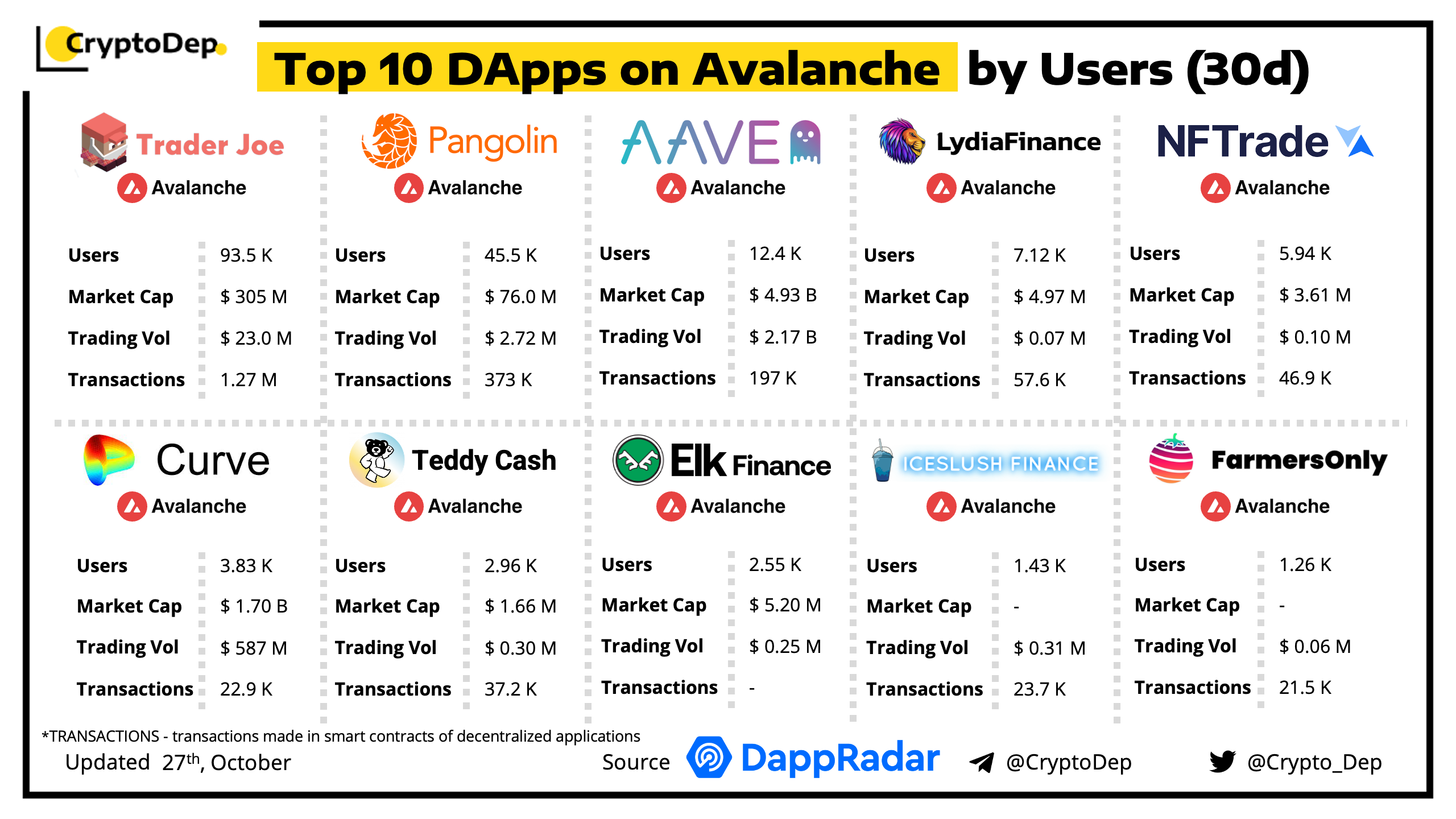 ββTop 10 Dapps on Avalanche by Users Activity (30d)