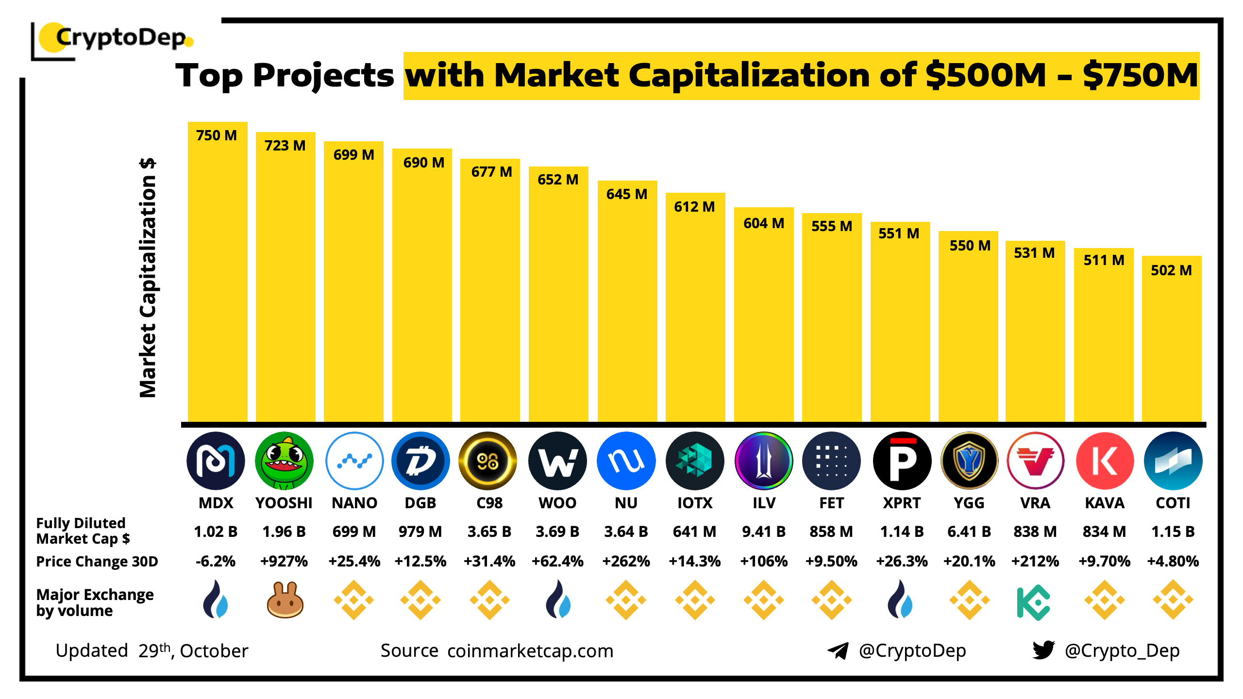Top Projects with Market Capitalization of $500M - $750M