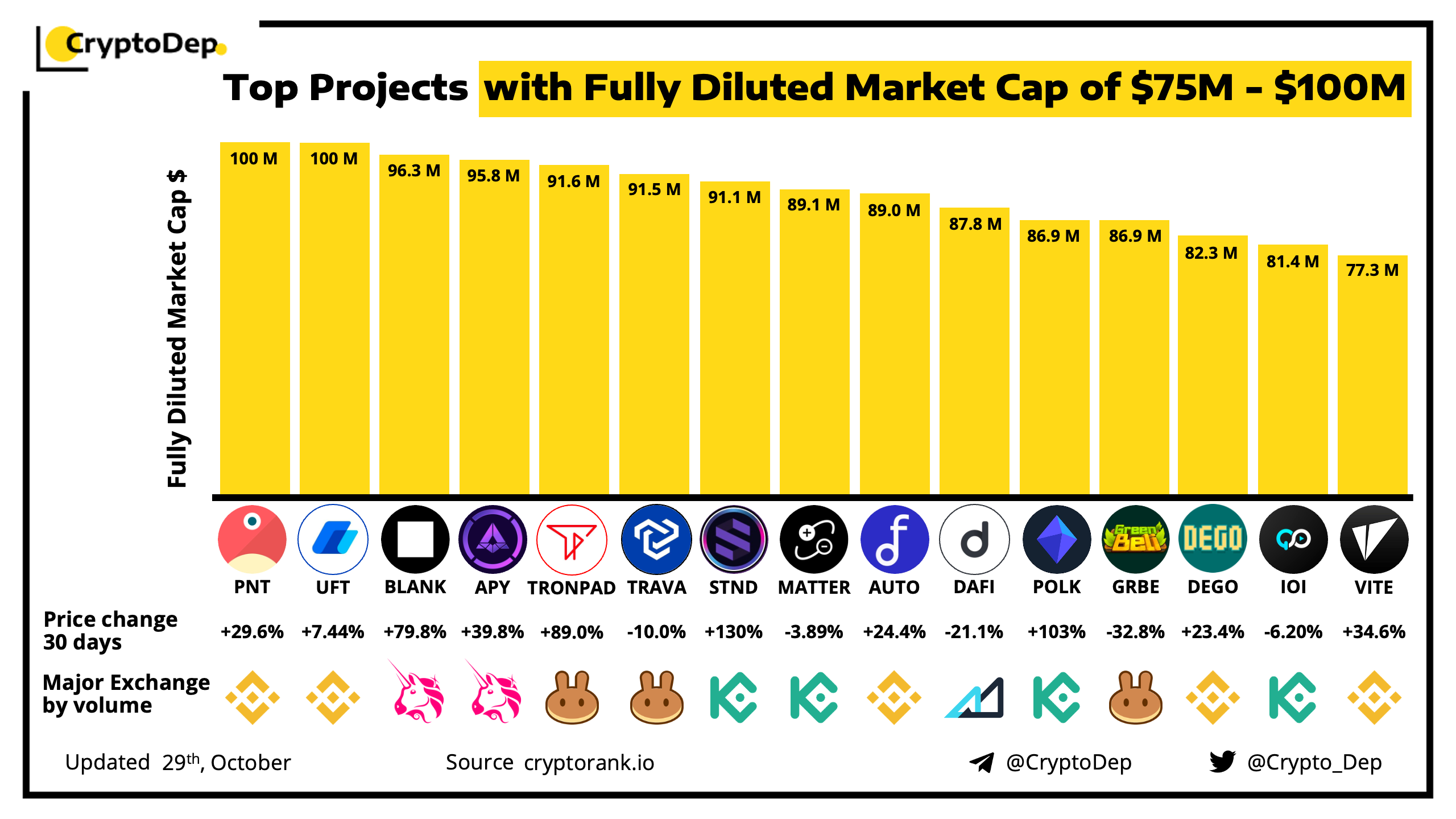 Top Projects with Fully Diluted Market Cap of $75M - $100M