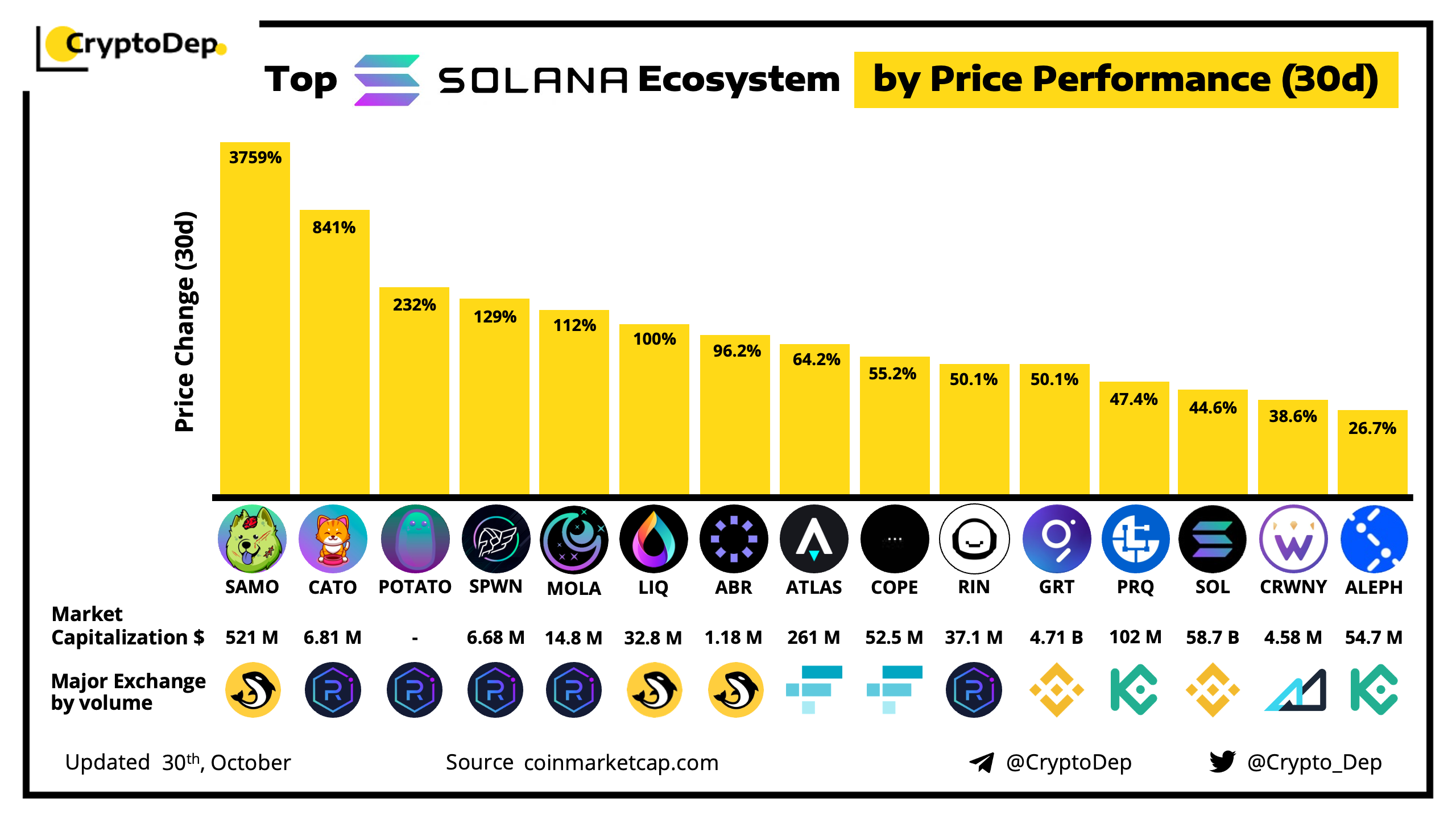 Top Solana Ecosystem Tokens by Price Performance (30d)