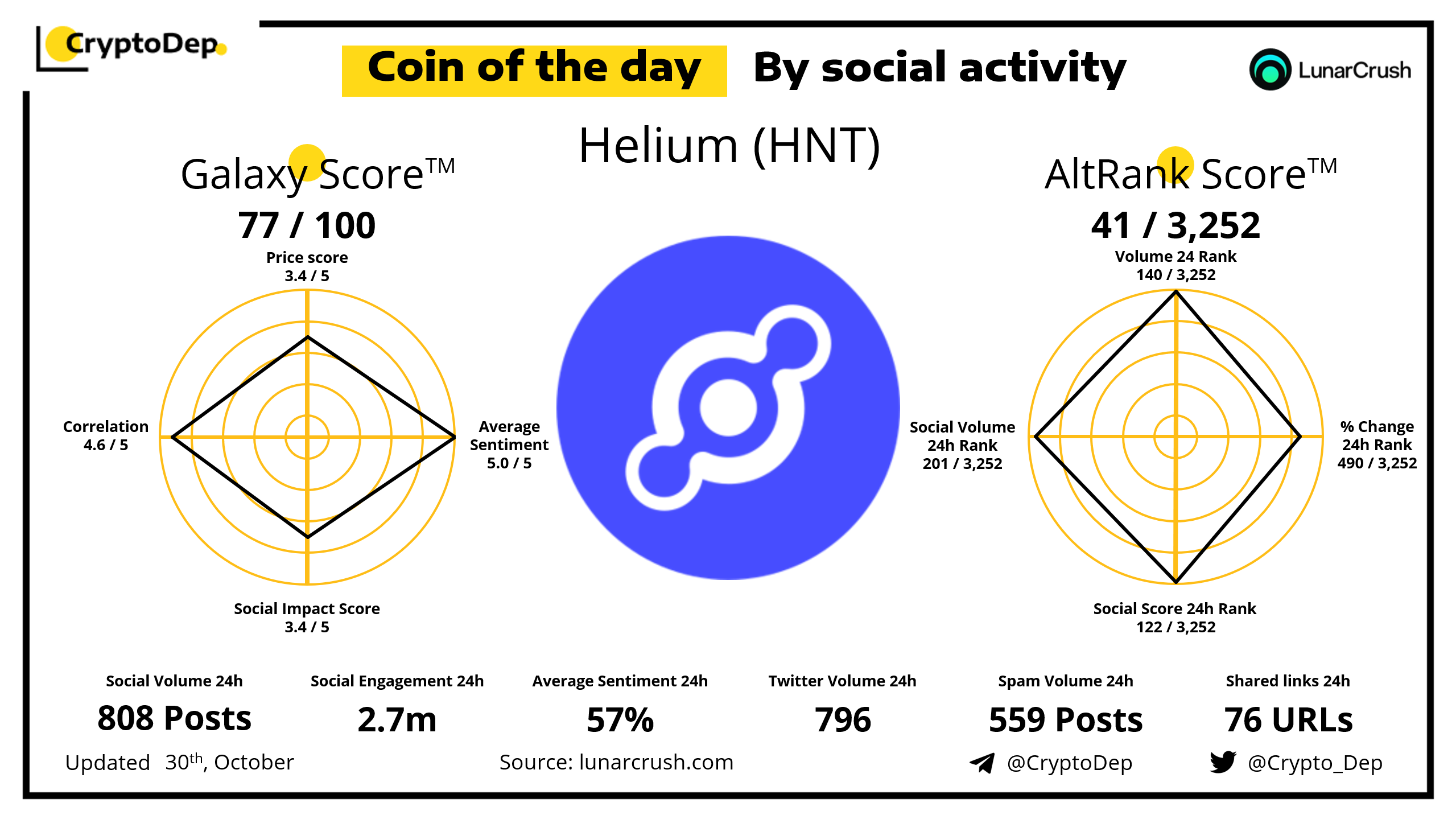 Coin of the day by social activity - Helium (HNT).