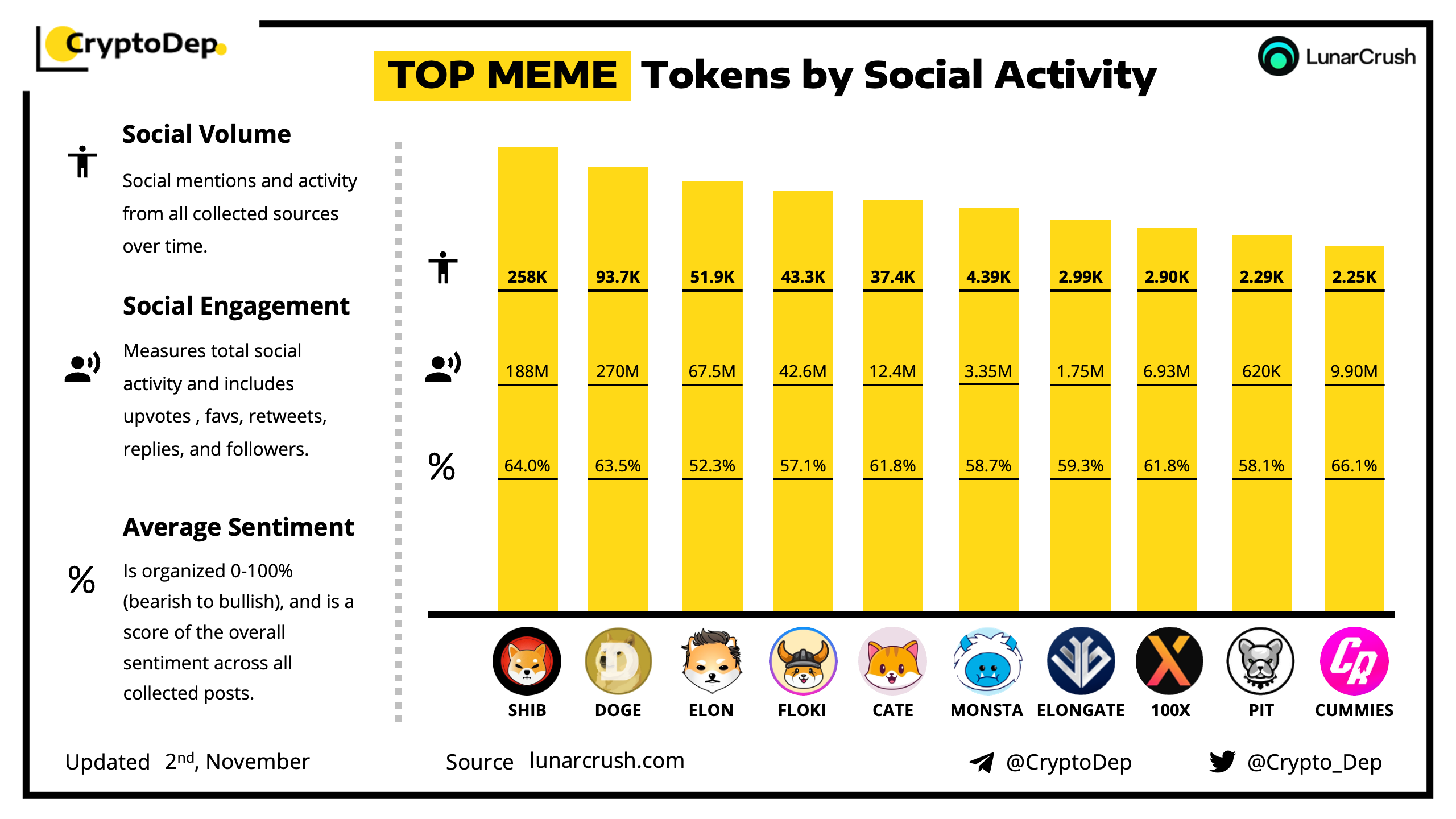 Social Engagement measures total social activity and includes upvotes, favs,retweets, replies, and followers.