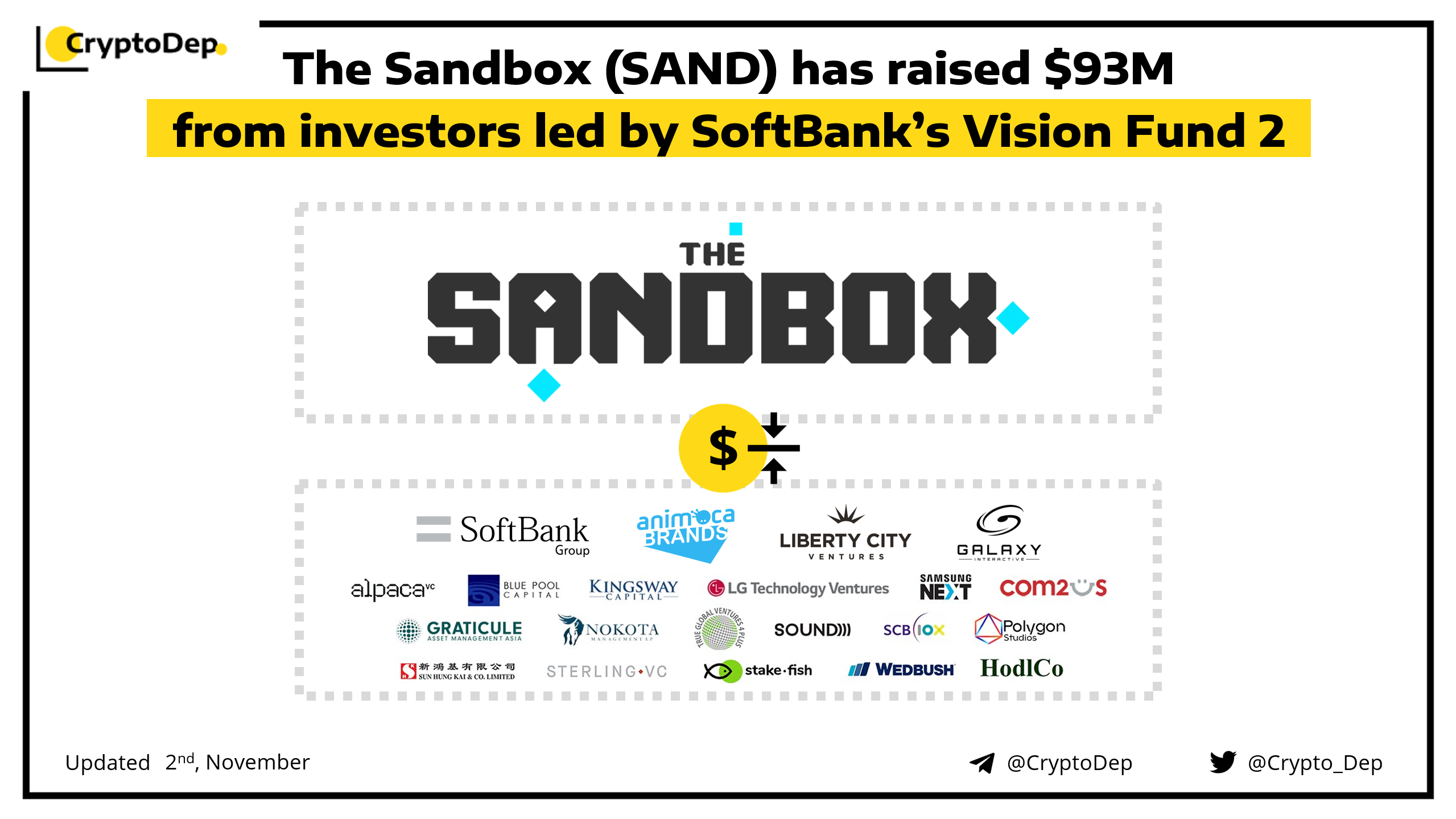 ββThe Sandbox (SAND) has raised $93M from investors led by SoftBankβs Vision Fund 2
