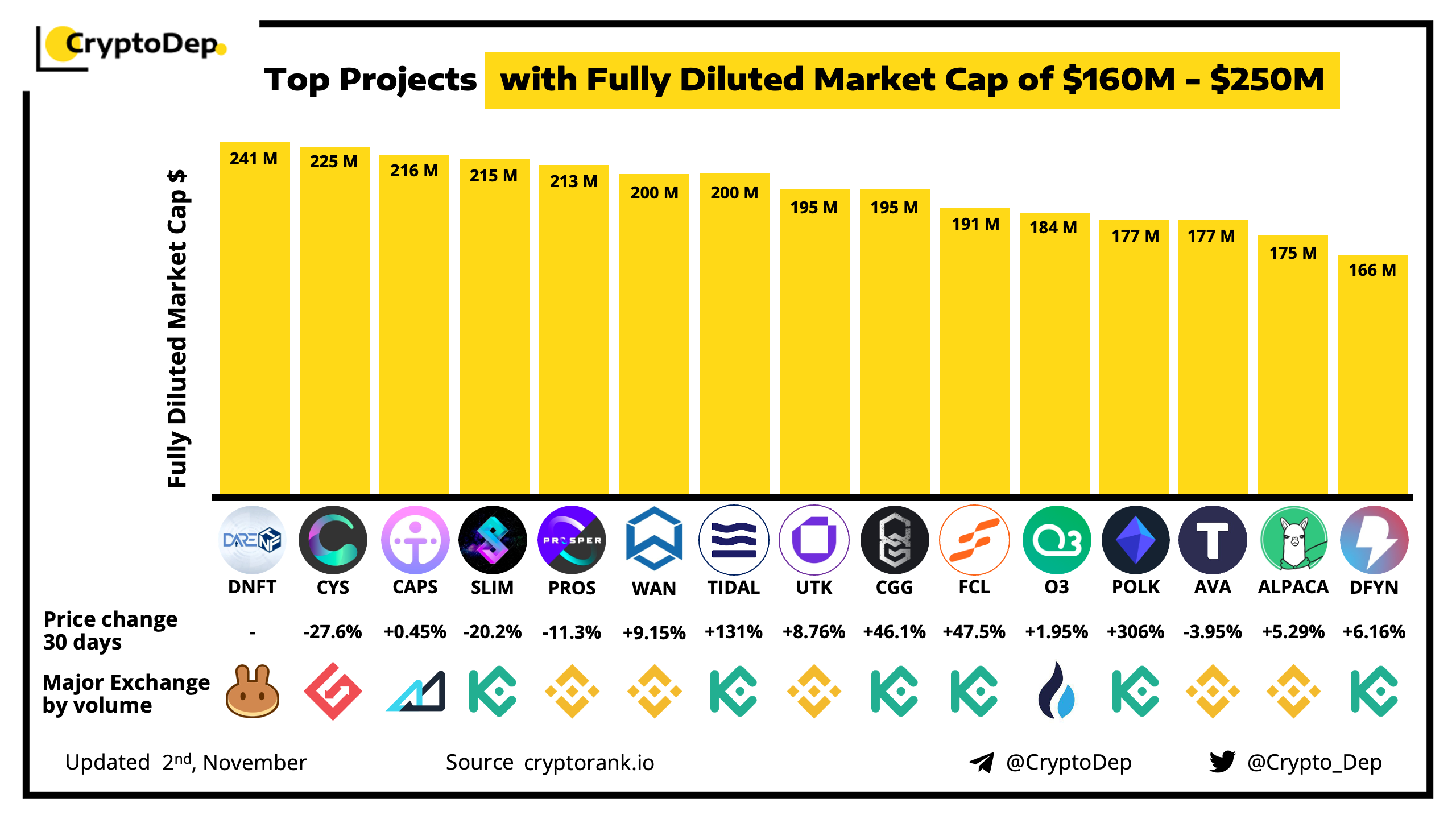 ββTop Projects with Fully Diluted Market Cap of $150M - $250M