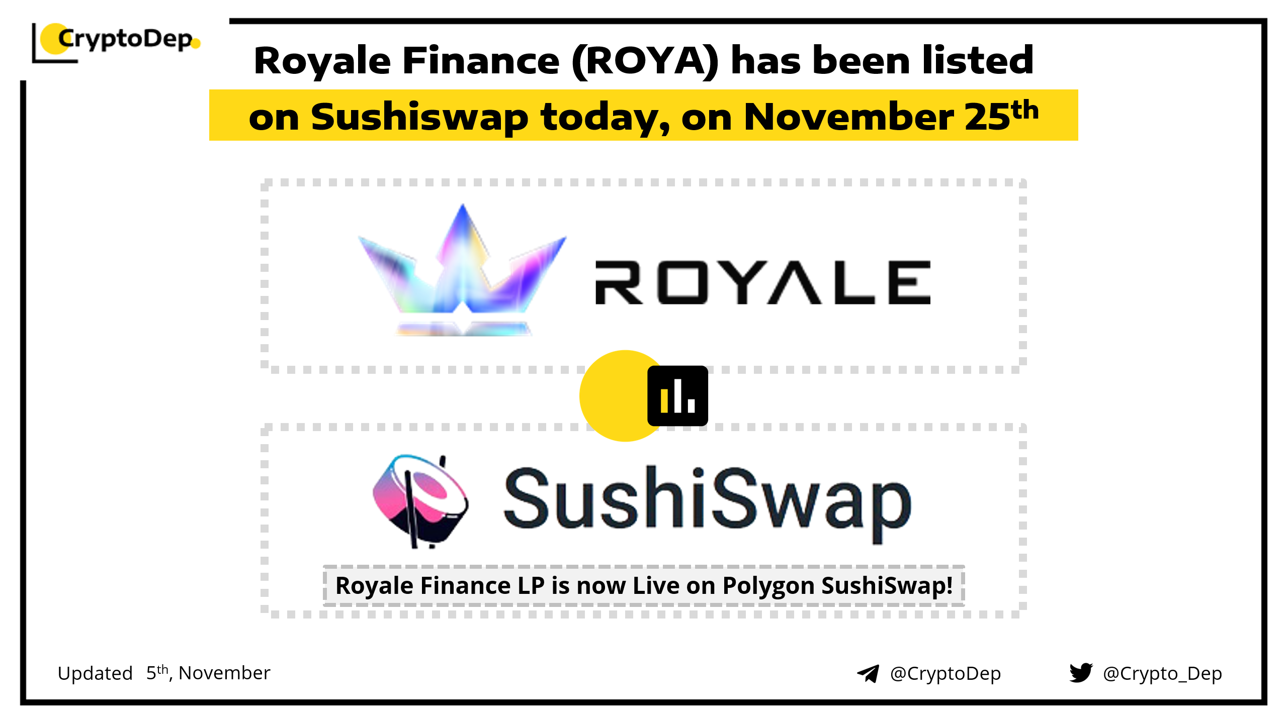 ββRoyale Finance (ROYA) has been listed on Sushiswap today, on November 25th