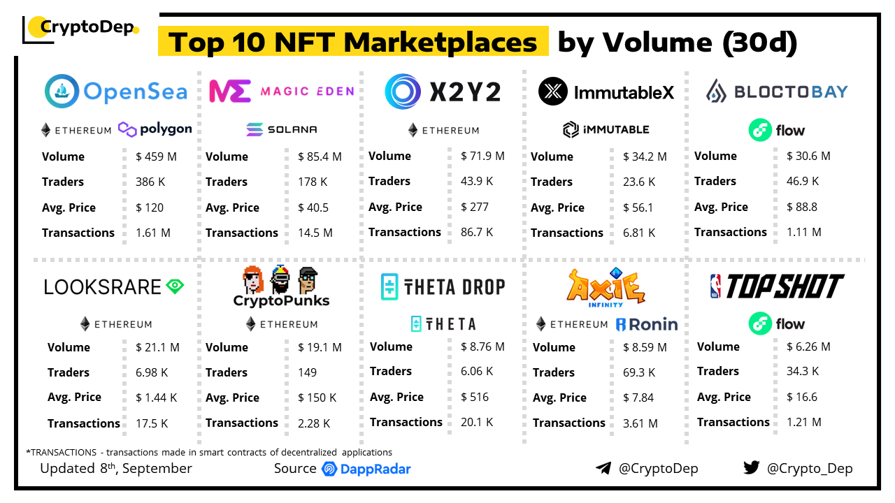 ββTop 10 NFT Marketplaces by Volume (30d)