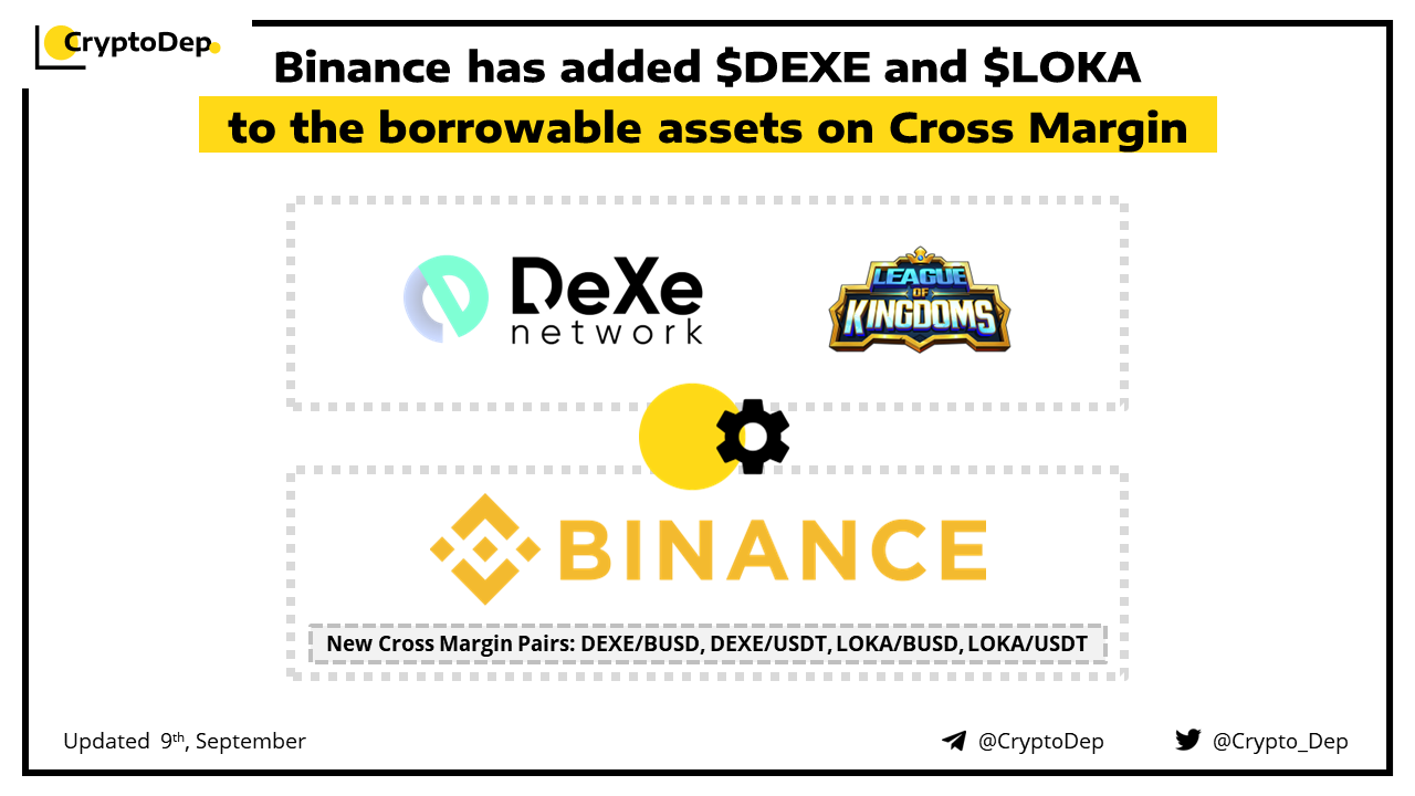 Binance has added $DEXE and $LOKA to the borrowable assets on Cross Margin