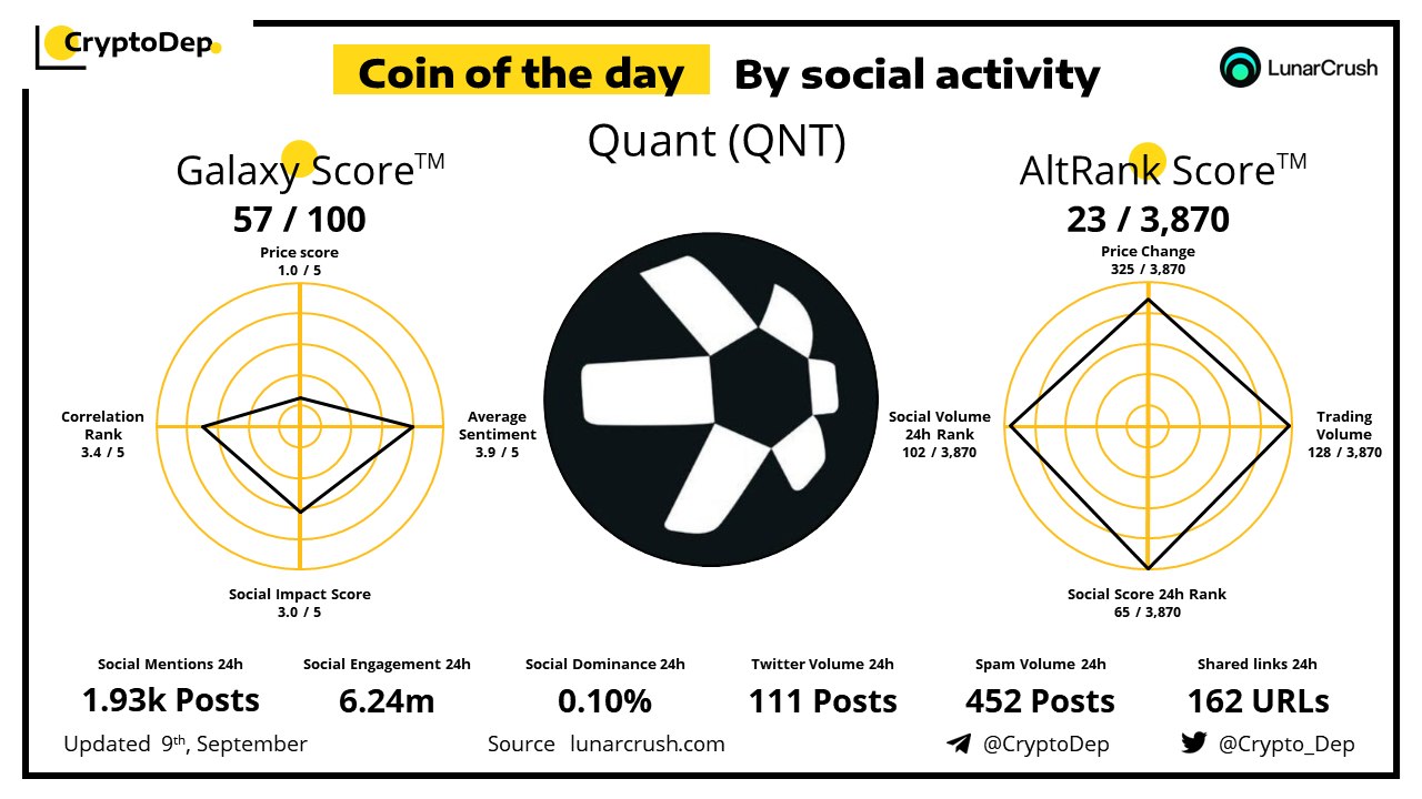 Coin of the day by social activity - Quant (QNT).