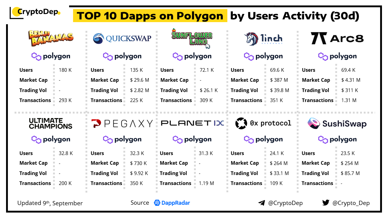 Top 10 Dapps on Polygon by Users Activity (30d)