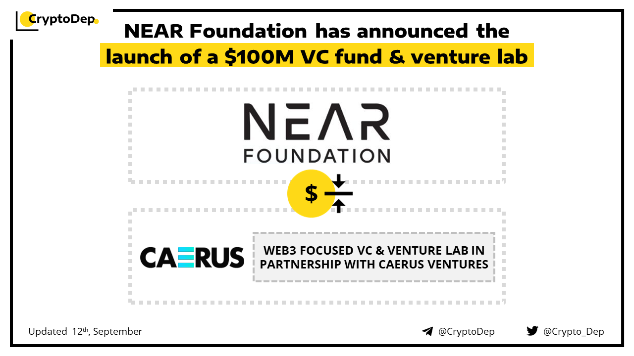 NEAR Foundation to launch a $100M venture capital fund and venture lab for web3 through the partnership with Caerus Ventures. The fund will have an initial closing of $50M and will aim to bring in $100M during seed to Series A funding rounds, while the venture Lab will be Caerus' first investment, focused on attracting creators, talent, and franchise owners.