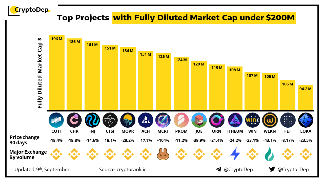 Top Projects with Fully Diluted Market Cap under $200M