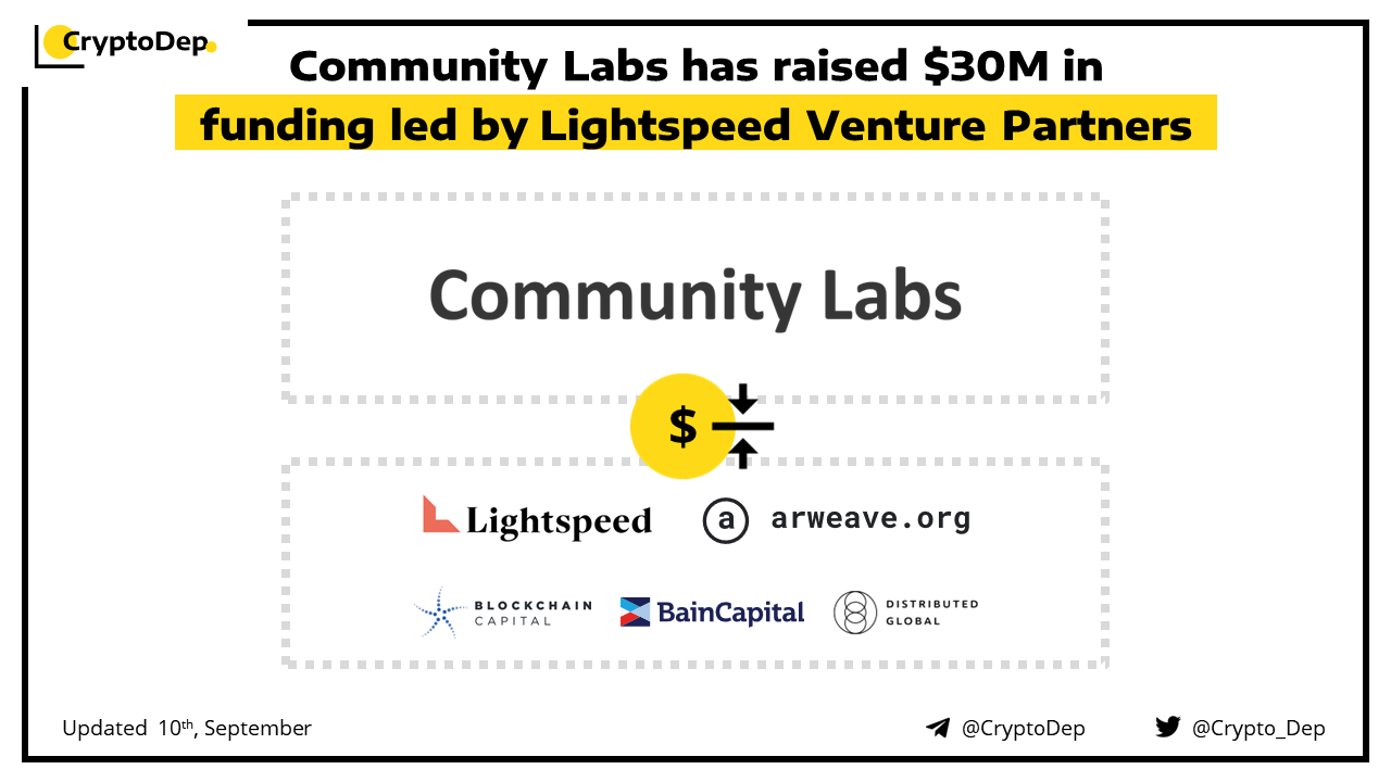 Community Labs, an Arweave-native software development company and venture studio focused on data storage in the Arweave ecosystem, closed $30M strategic round. The round was led by Lightspeed Venture Partners. Other funding participants included Arweave, Bain Capital Crypto, Blockchain Capital, Distributed Global, and Road Capital Management. The fund will be toward building and funding teams working toward leveraging on-chain data storage in novel ways.