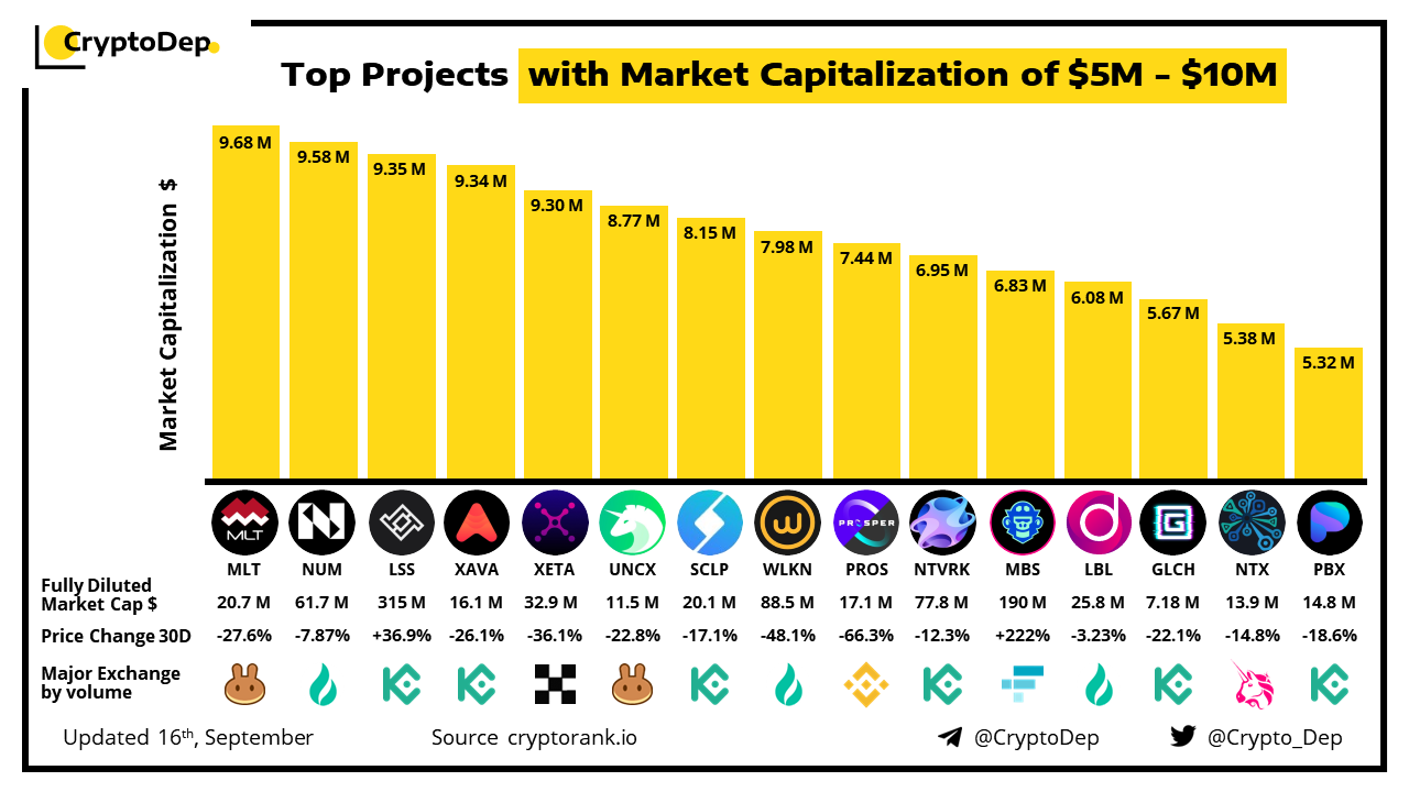 ββTop Projects with Market Capitalization of $5M - $10M