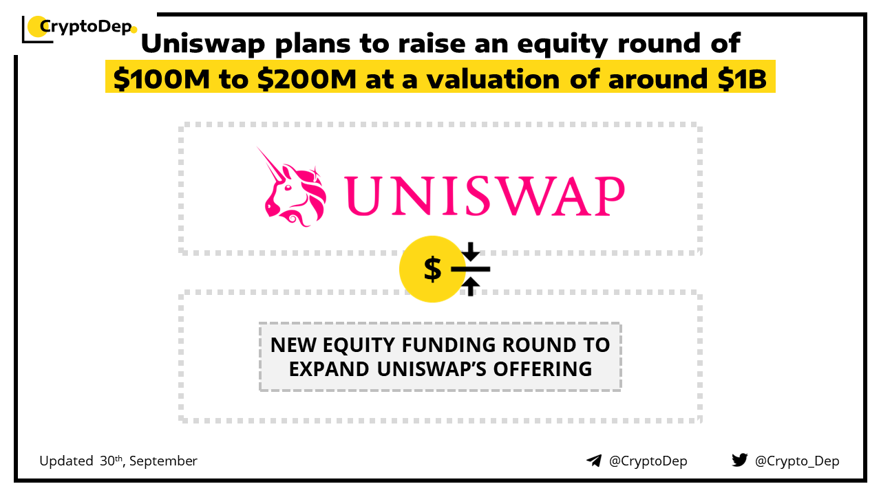 ββUniswap plans to raise an equity round of $100M to $200M at a valuation of around $1B
