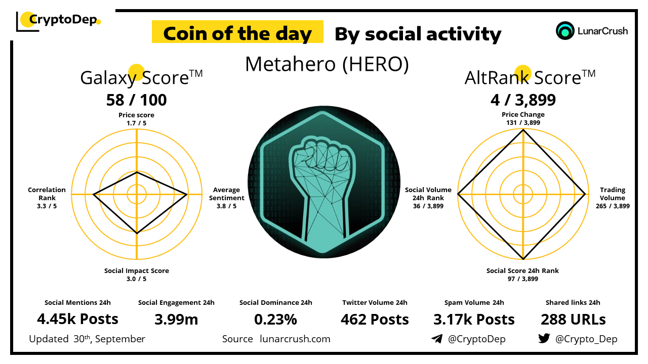 ββCoin of the day by social activity - Metahero (HERO).