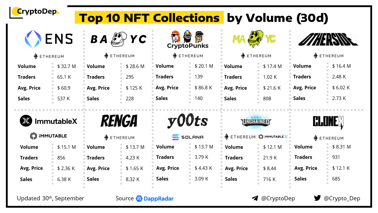 ββTop 10 NFT Collections by Volume (30d)
