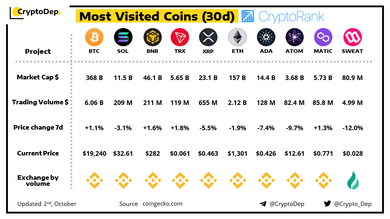 ββMost Visited Coins (30d) by CryptoRank.io