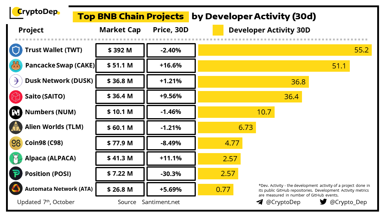 Top BNB Chain Projects by Developer Activity (30d)
