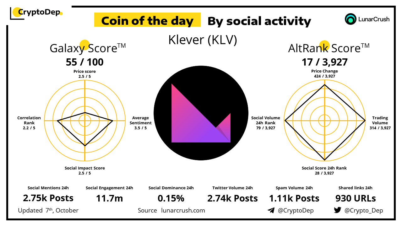 Coin of the day by social activity - Klever (KLV).