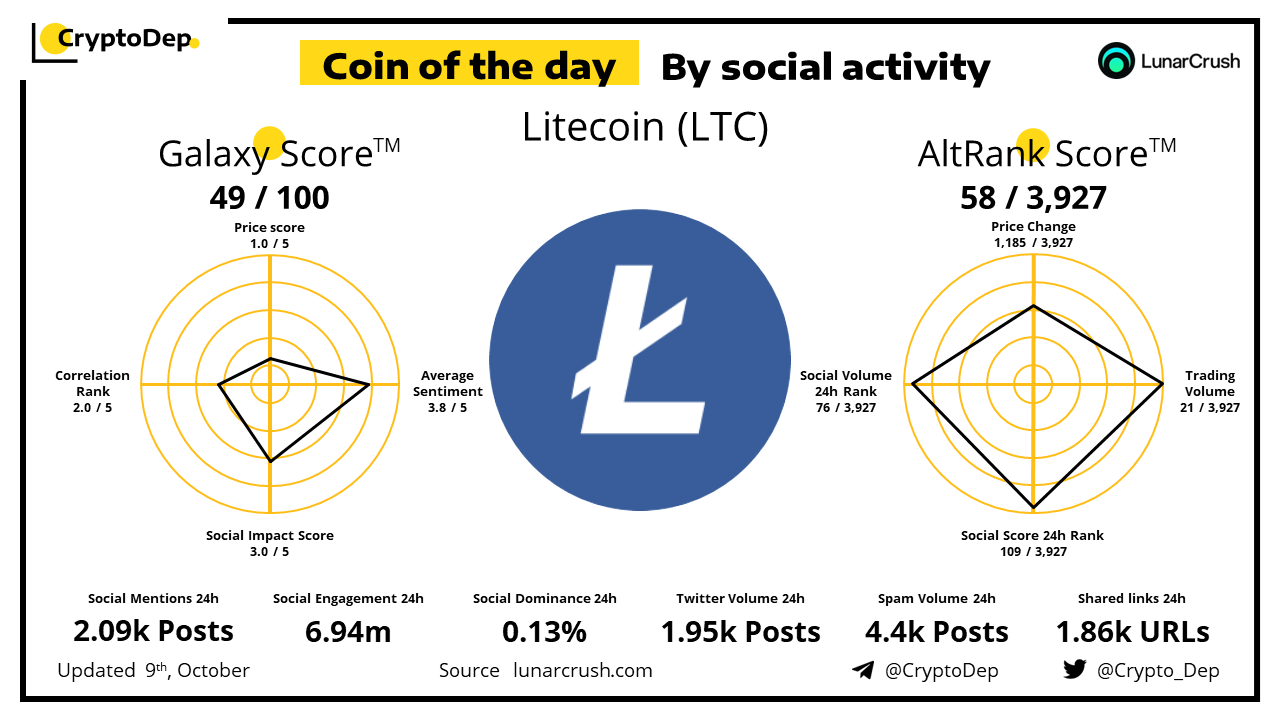 ββCoin of the day by social activity - Litecoin (LTC).