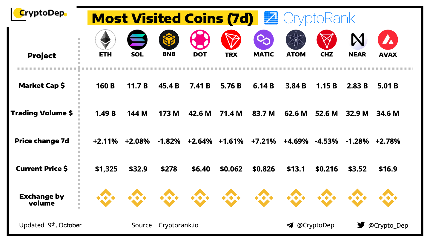 ββMost Visited Coins (7d) by CryptoRank.io