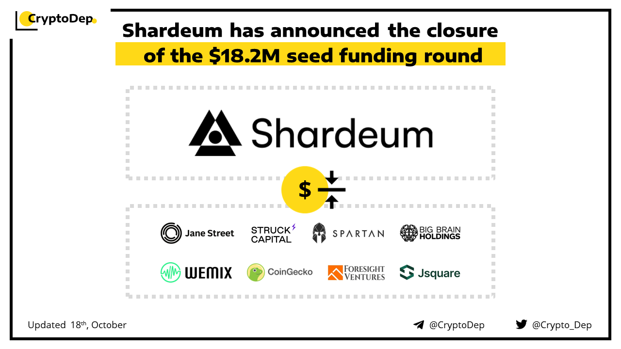Shardeum, a Layer 1 blockchain has raised $18.2M in the seed investment round. Funding participants include Jane Street, Struck Crypto, The Spartan Group, Big Brain Holdings, DFG, Ghaf Capital Partners, Foresight Ventures, Wemix, Coingecko, and others. The fresh capital will be used to build out Shardeum's team, ecosystem, and community.