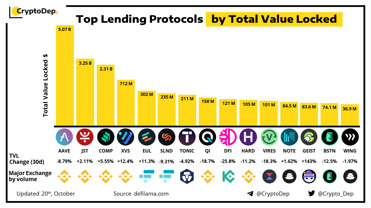 ββTop Lending Protocols by Total Value Locked (TVL)