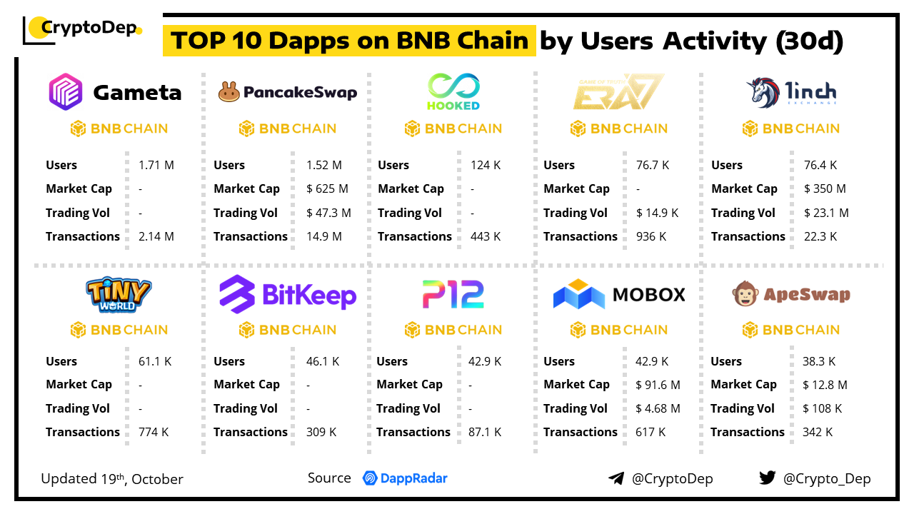 ββTOP 10 Dapps on BNB Chain by Users Activity (30d)