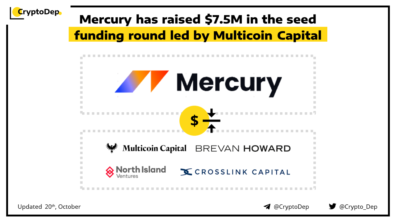 ββMercury has raised $7.5M in the seed funding round led by Multicoin Capital