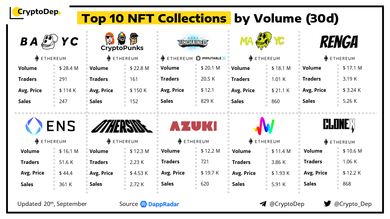 ββTop 10 NFT Collections by Volume (30d)