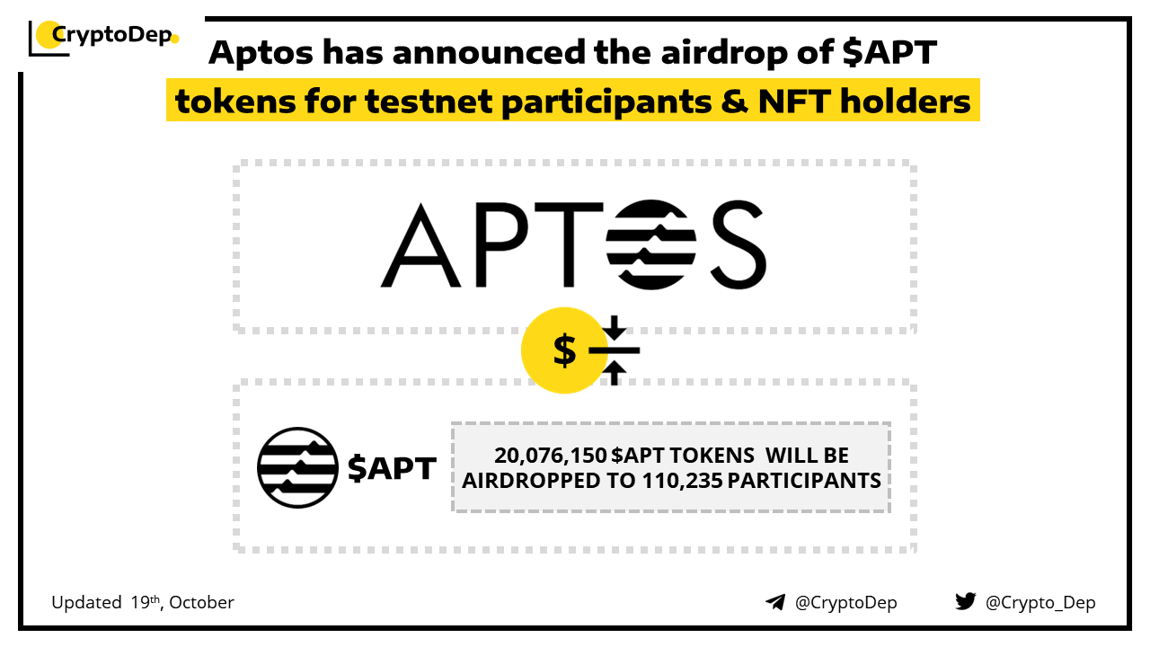ββAptos has announced the airdrop of $APT tokens for testnet participants & NFT holders