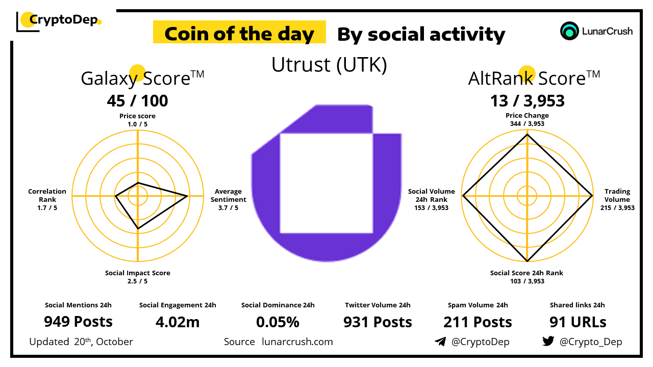 ββCoin of the day by social activity - Utrust (UTK).