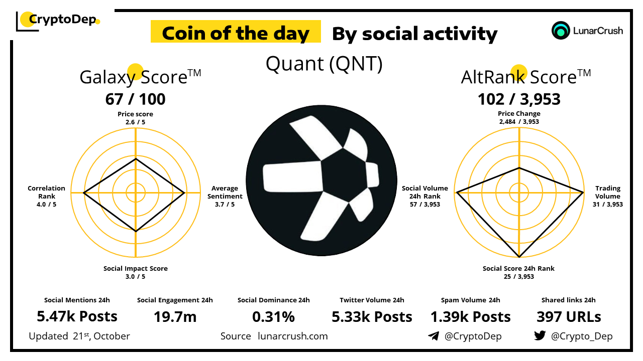 ββCoin of the day by social activity - Quant (QNT).