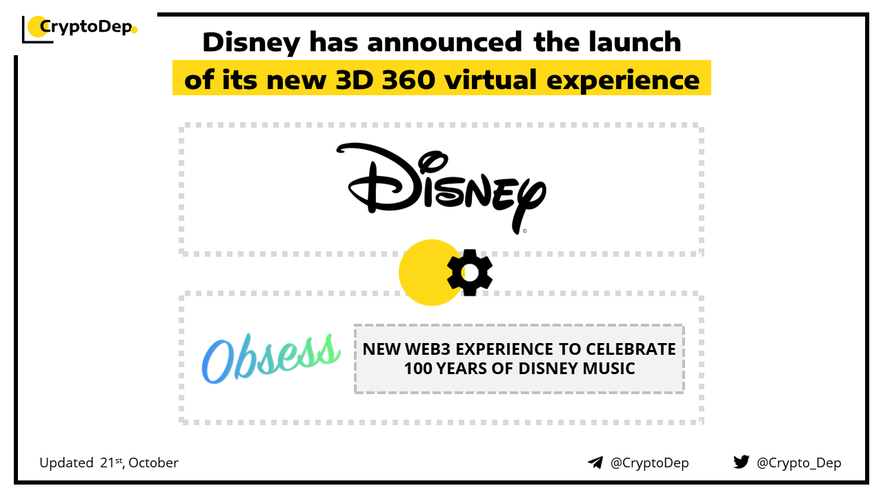 Disney has partnered with Obsess, an e-commerce platform known for creating interactive virtual storefronts, to release a new web3 experience for its Disney Music Emporium online store. To celebrate Disneyβs 100th-anniversary, users can also click through a musical timeline titled βDisney100: The Wonder of Disney Musicβ to enjoy a century of music from fan-favorite titles.