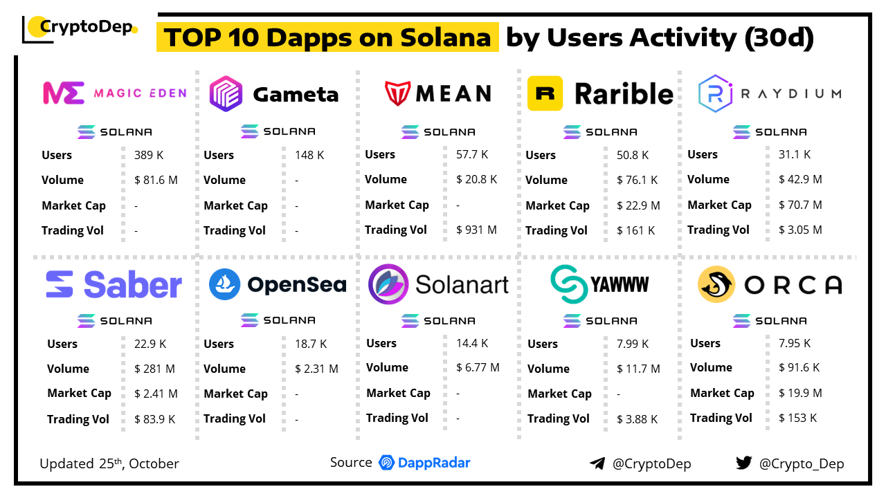ββTop 10 Dapps on Solana by Users Activity (30d)