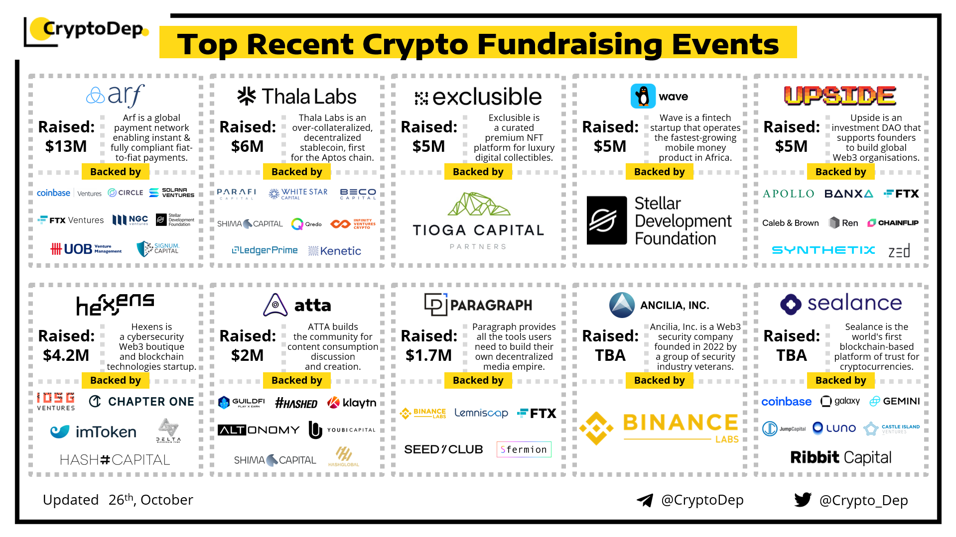 We are excited to present a list of some recent crypto fundraising events, backed by well-known investors such as Binance Labs, Circle Ventures, Coinbase Ventures, FTX Ventures, Hashed, Kenetic Capital, Infinity Ventures Crypto. Shima Capital, Jump Capital, LedgerPrime, Gemini, Signum Capital, Stellar Development Foundation, and others. Let's take a look!
