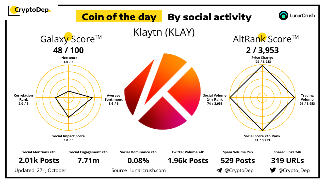 ββCoin of the day by social activity - Klaytn (KLAY).