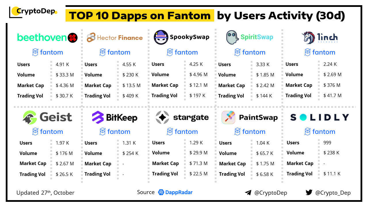 ββTop 10 Dapps on Fantom by Users Activity (30D)