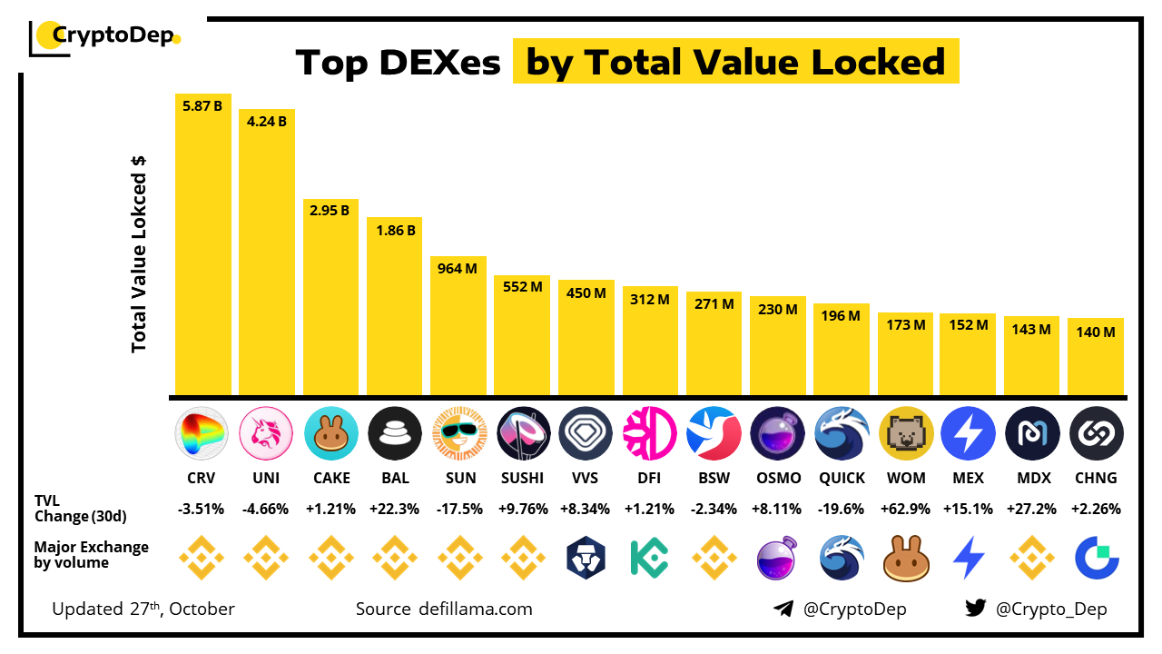ββTop DEXes by Total Value Locked (TVL)