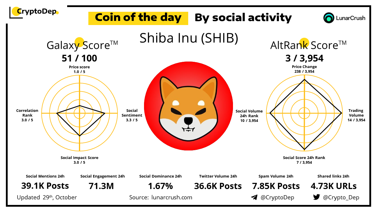 โโCoin of the day by social activity - Shiba Inu (SHIB).